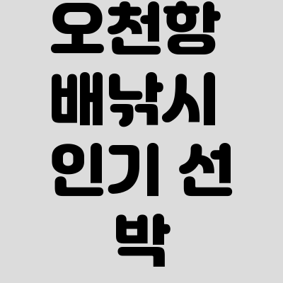 - 예약 시스템: 대부분의 오천항 배낚시 선박은 온라인 실시간 예약 시스템을 운영하여 편리하게 좌석을 확보할 수 있습니다.